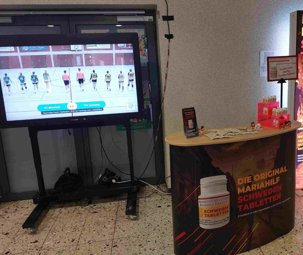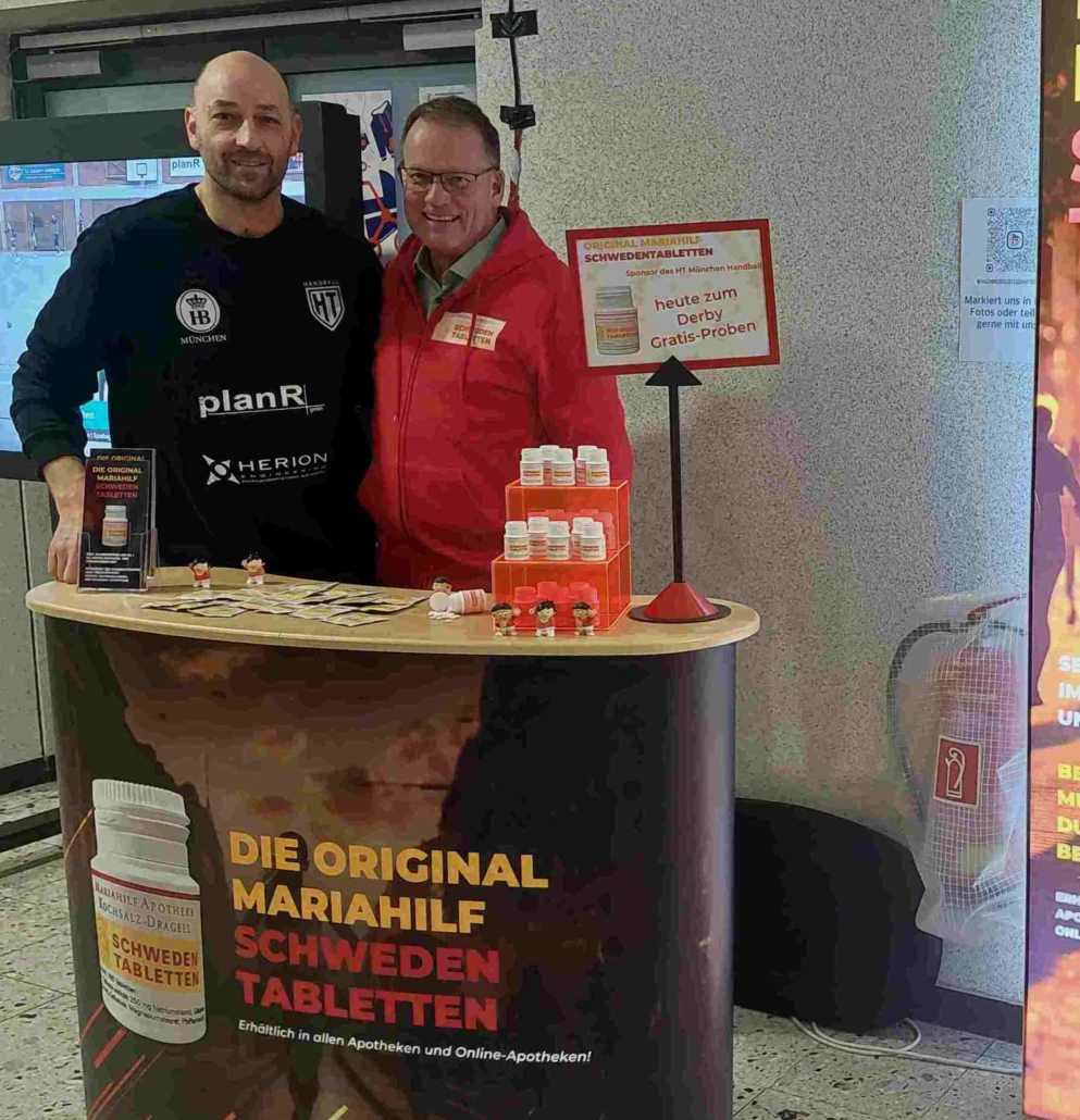 Zuschauer wie Sportler durften sich erneut von den original Mariahilf Schwedentabletten überzeugen und sich Gratisproben für das nächste Sportereignis zum Ausprobieren sichern. Als Sponsor des HT informierten wir an unserem Stand wieder rund um die für Sportler so wichtige Natriumsubstitution.
